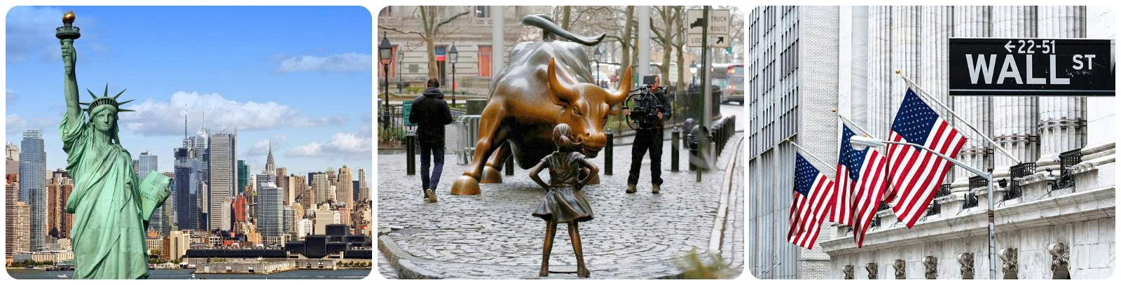 - Phố tài chính Wall Street - Nơi tọa lạc của sàn giao dịch chứng khoán New York và các trung tâm tài chính ngân hàng.