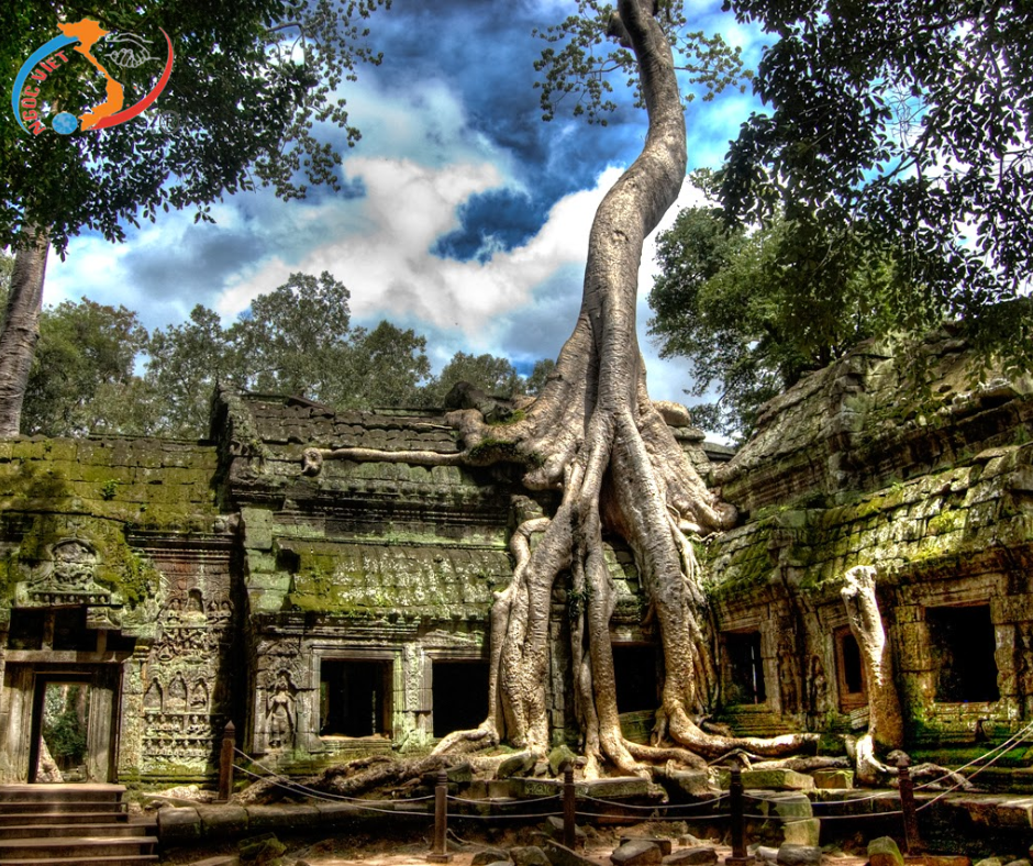 Đền Ta Prohm với những nhánh rễ cây khổng lồ cuốn chặt lấy các phiến đá vôi, dây leo vươn mình ôm trọn những mái ngói cổ kính. Trải qua hàng trăm năm, khu rừng nhiệt đới Campuchia dường như đã nuốt chửng Ta Prohm, khiến nơi đây trở thành một phần không thể tách rời của tự nhiên. Những cây cổ thụ mọc lên từ các kẽ tường và mái đền, tạo nên khung cảnh hùng vĩ khi chúng đẩy nghiêng cả những bức tường đá. Chính sự xâm lấn kỳ diệu này đã làm nên vẻ đẹp hoang sơ, huyền bí không thể trộn lẫn của Ta Prohm.