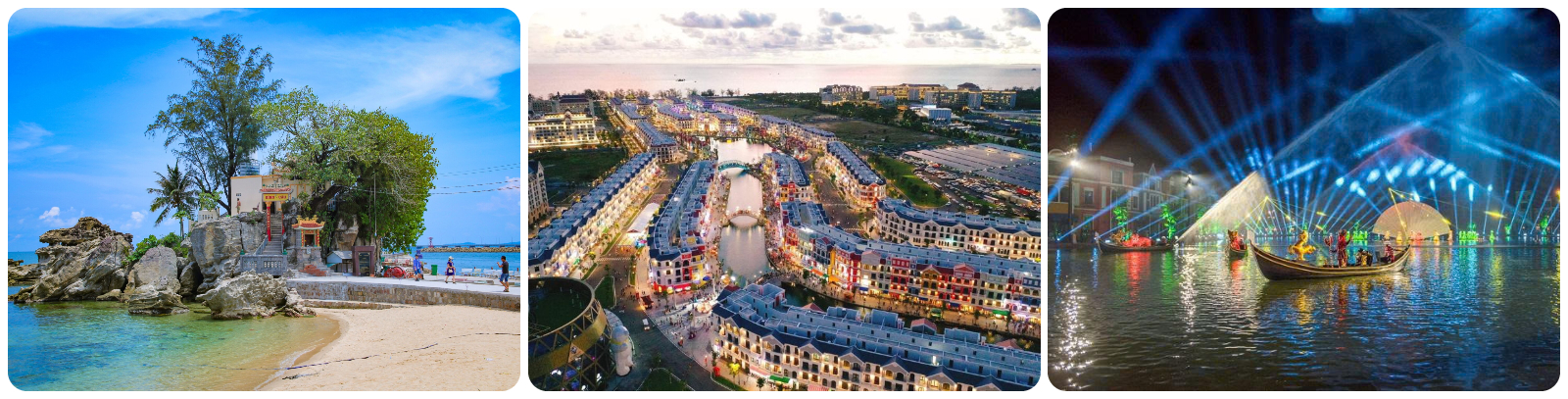 - Grand World – Thành phố không ngủ: thuộc siêu quần thể Phú Quốc United Center, diện tích lên đến 85ha với kiến trúc cảnh quan rực rỡ lấy cảm hứng từ châu Âu. Được xây dựng lộng lẫy tại 4 tiểu khu: Quảng trường, Shanghai, Indochine, Mallorca.